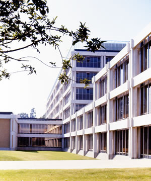 south separating the laboratories, library and lecture theatres